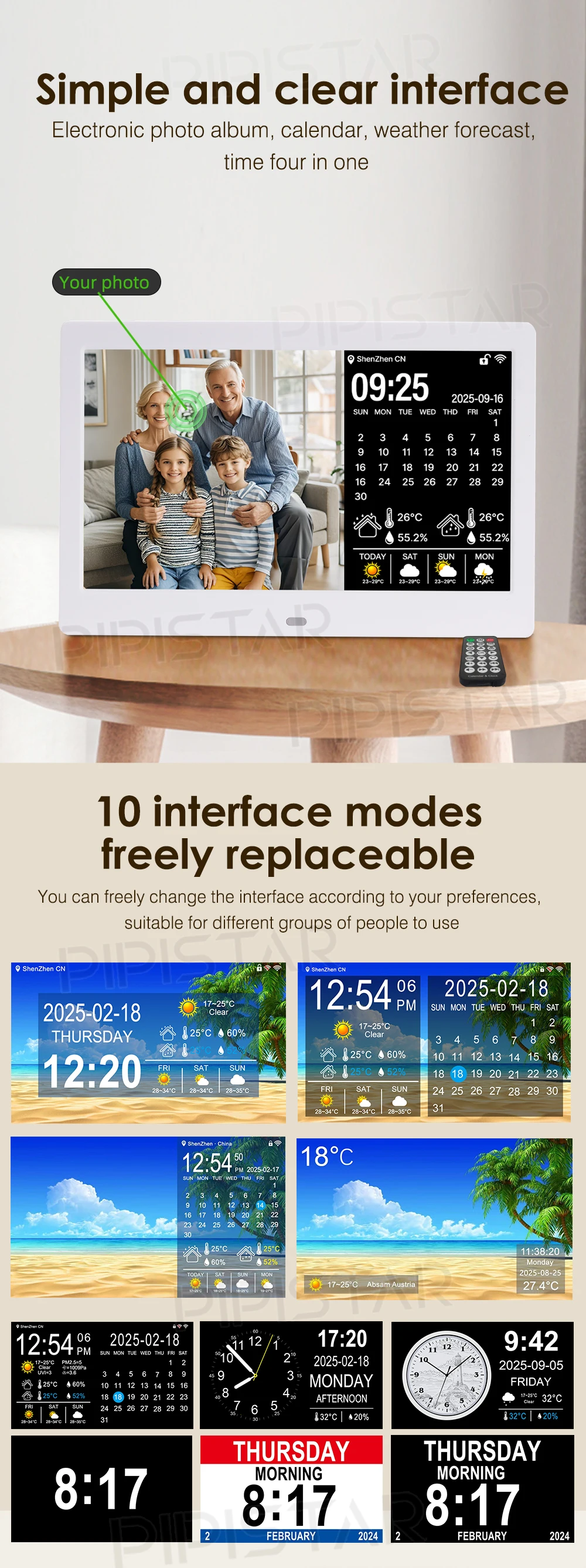 【Digital photo frame】This is also a digital photo frame that can display calendars, photos, weather forecasts, and play pictures, videos, and music on the same interface. The calendar clock has no memory and does not store photos. It requires reading image information through SD card and USB flash drive. It does not support reading ultra high definition images and videos.