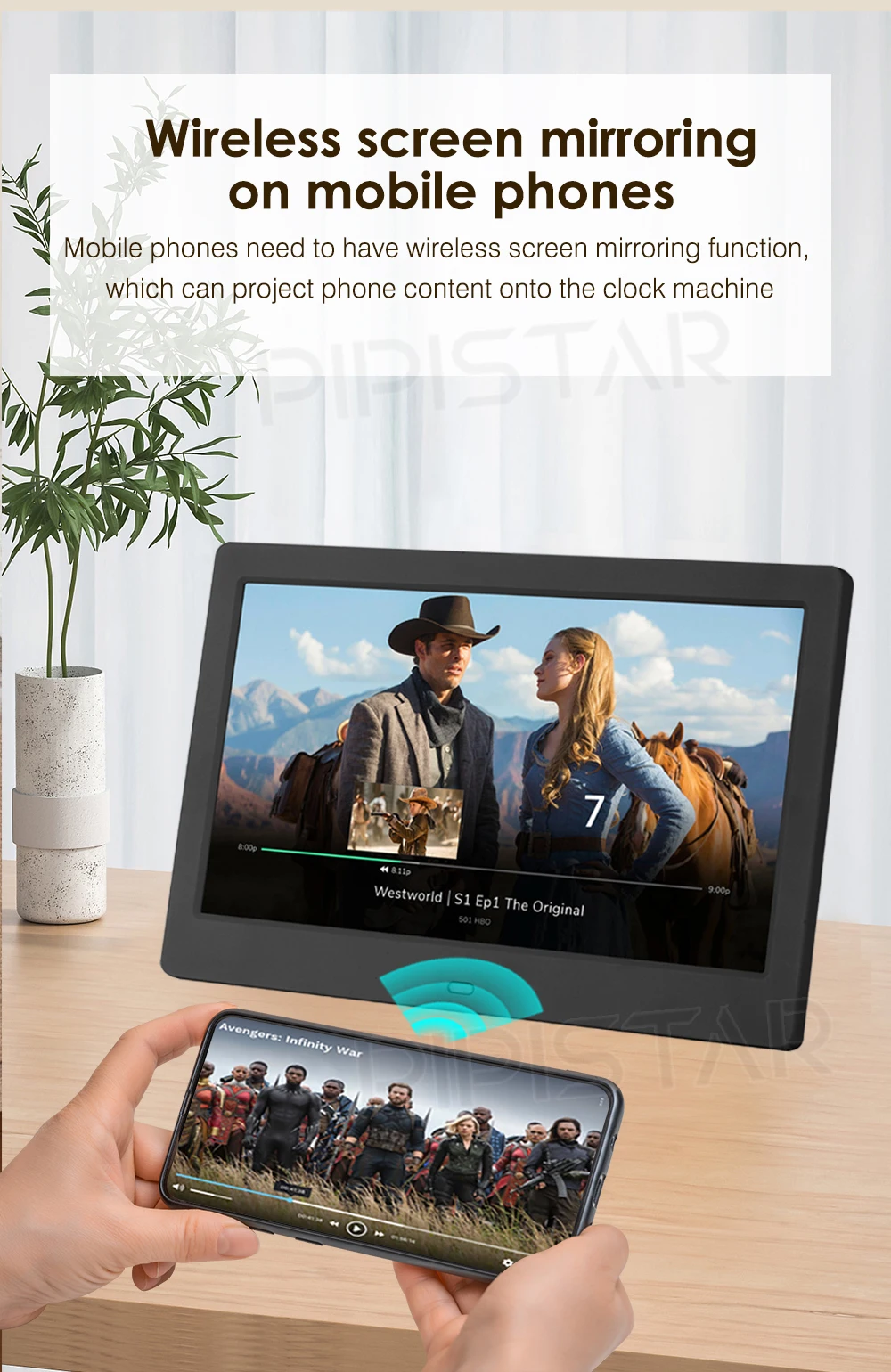 ● Support wireless screen mirroring function on mobile phones, projecting the phone screen onto the calendar clock. It does not support transferring photos from the phone to the calendar clock.