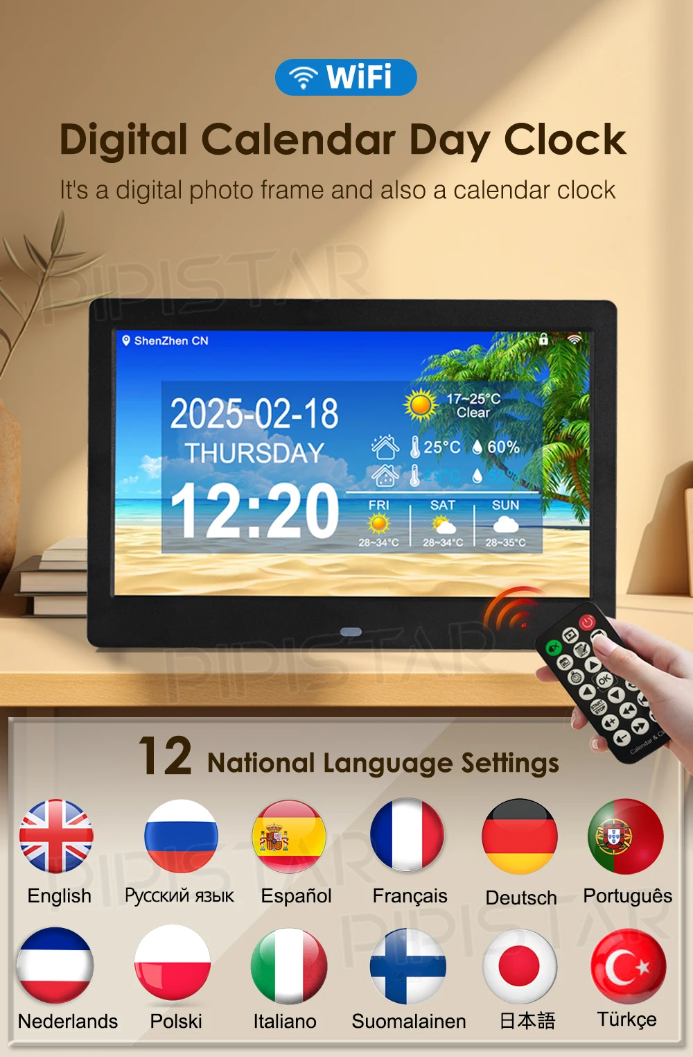 10.1/7-inch WiFi Calendar Dementia Wall Clock Time Date Weather Forecast Hour Smart Desktop Photo Frame Wall Mounted