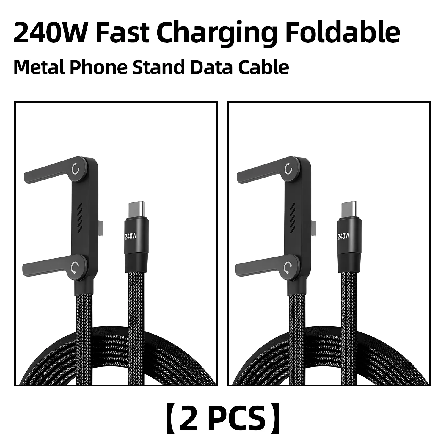 2-IN-1 Type-C Cable Foldable Mobile Phone Holder 240W Fast Charging Data Cable Multifunction Phone Charge Bracket Dual PD cable