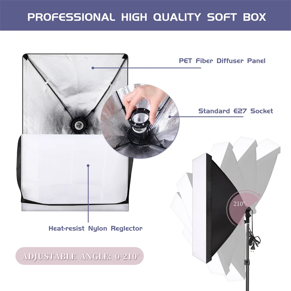 20-135W Softbox Lighting Kit 50x70CM Photography LED Lamp Professional Continuous Light System Equipment For Photo Studio