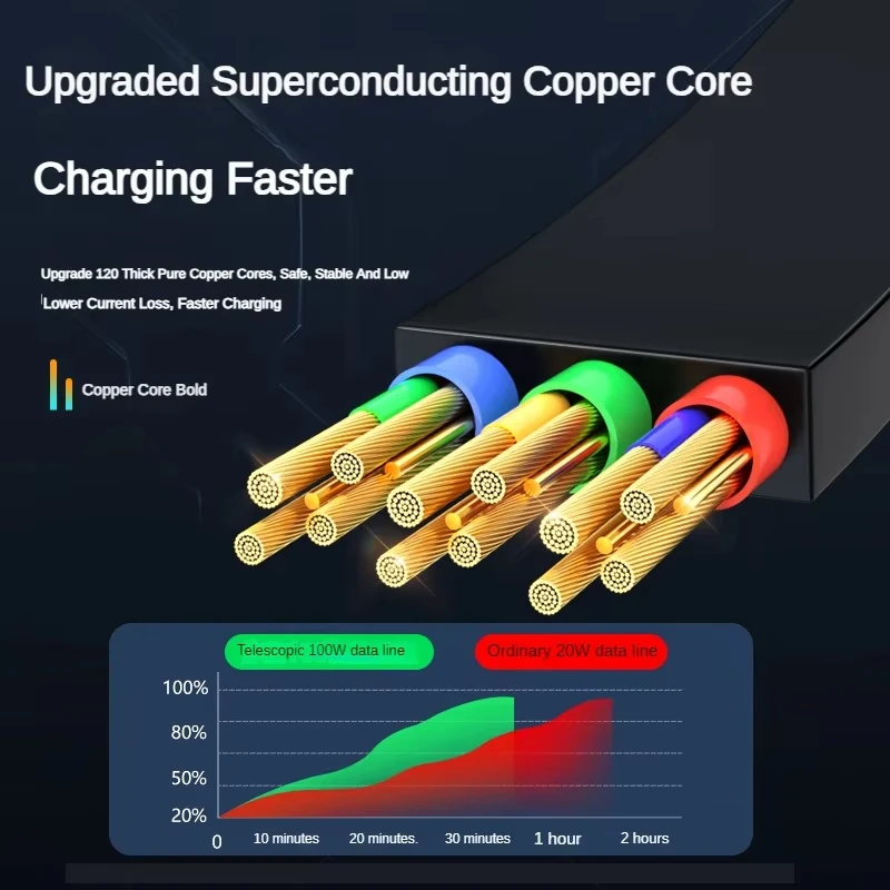 This cable can be stretched and retracted, but the correct way to use it is to pull both sides at the same time, that is, the USB and Type-C ports need to be pulled on both sides at the same time. If you want to stretch and retract the cable, pull both sides at the same time until the end and it will be recycled.