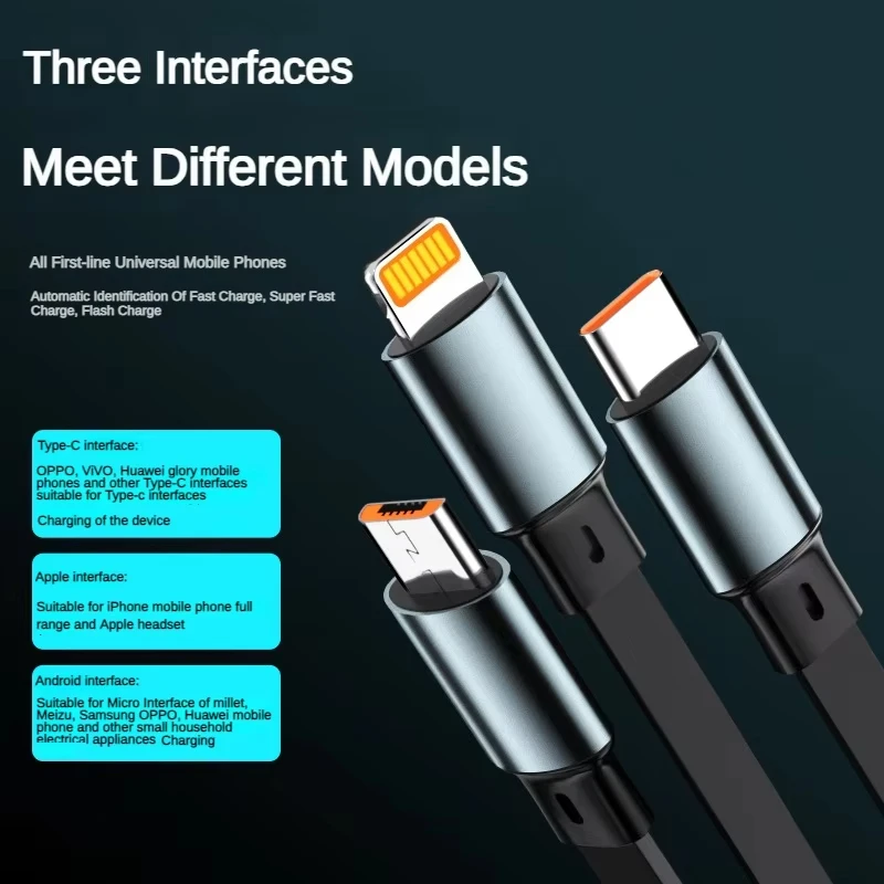 You only need to bring one cable when going out, which can be used for both iPhone port and Type-C port and Micro