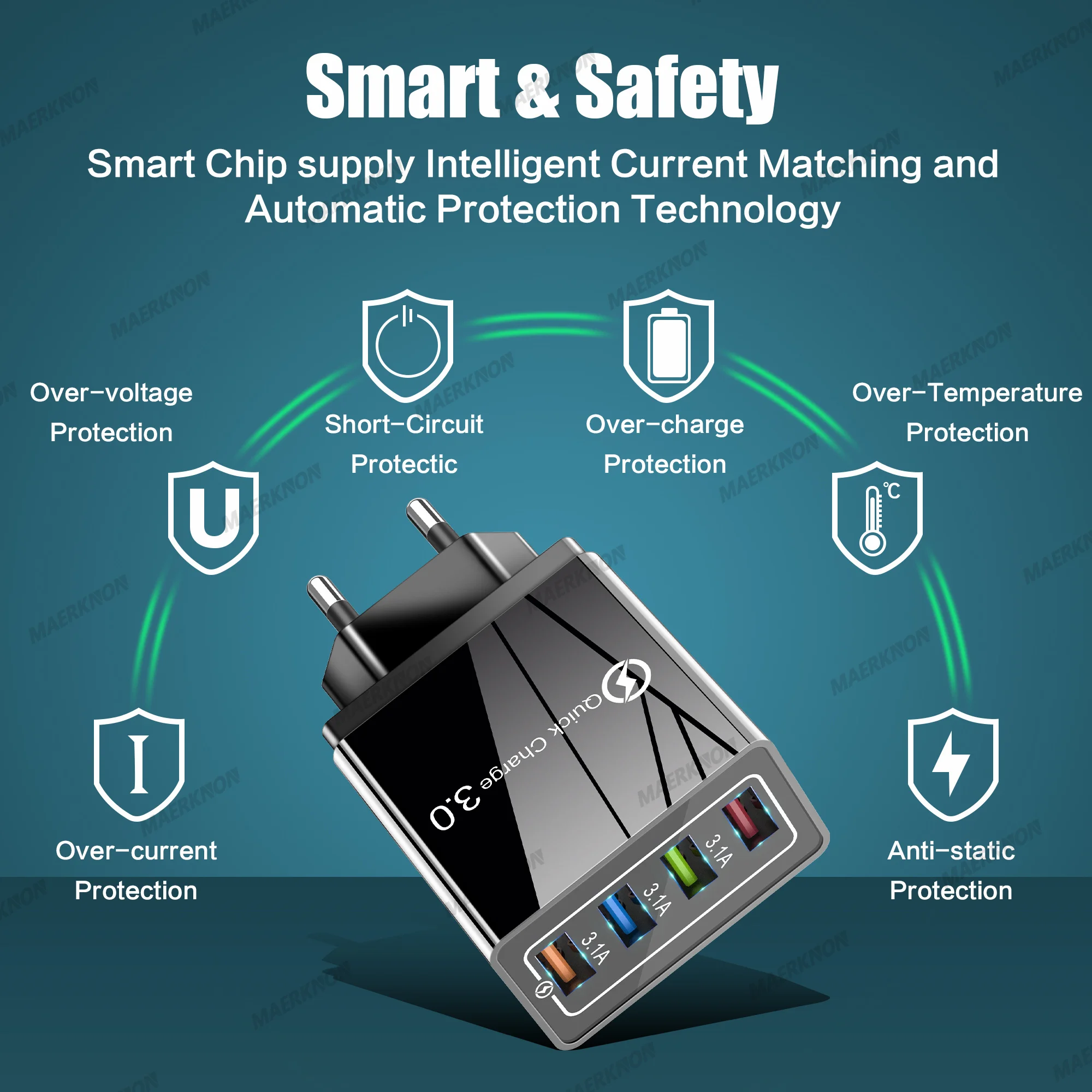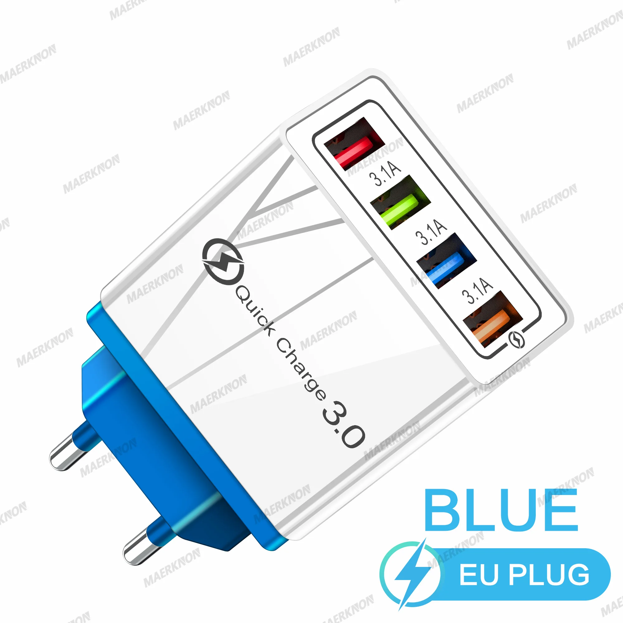 2. 4 USB ports ( quick charge 3.0 and 3 usb port 5V/3.1 A Max ), charging 4 devices at the same time.