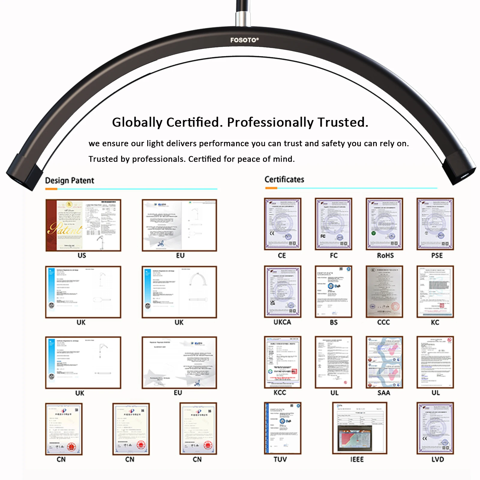 FOSOTO lighting products are internationally certified and professionally trusted to ensure the highest standards of performance, safety, and reliability. Designed for peace of mind and professional use, our lights are rigorously tested and compliant with global standards.