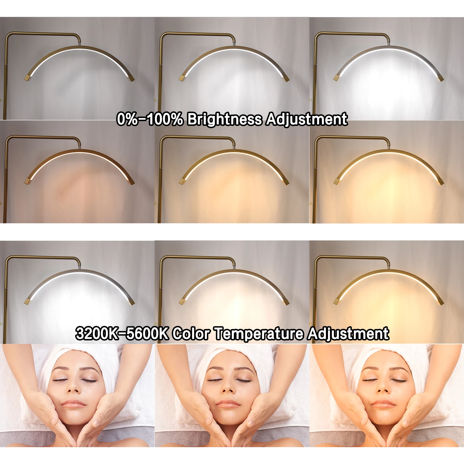 【Half-moon Light】fosoto special half-moon shape design with floor stand, It will make your work without any shadow obstruction.with 320pcs high-quality lamp beads, 45W high power and 95+ high color rendering.suitable for lash,eyelash,tattoo,desktop vlog, beauty salon live streaming, beauty project,nail enhancement etc.