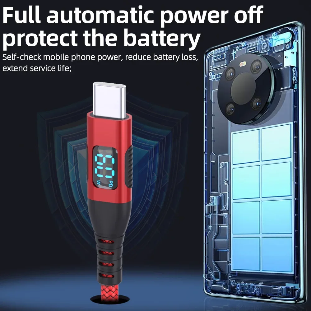 1 x PD 100W USB-C to USB-C Cable with LED Display (choose your color and length)