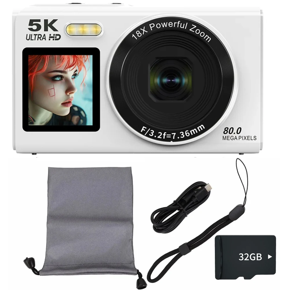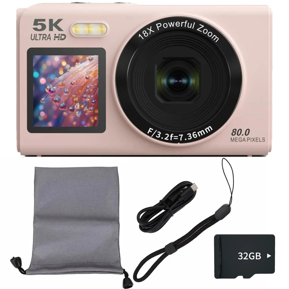 📸【5K UHD Video & 80MP Photo Capture, Record Every Special Moment】 This compact digital camera features the latest 13MP CMOS sensor system, supporting 5K video recording and 80MP high-resolution photos. Supports 5K video recording at 20FPS and 4K at 30FPS for professional-grade footage. Whether you're exploring the beauty of nature or capturing the joy of a family gathering, this camera ensures you can clearly document every important moment in stunning detail.