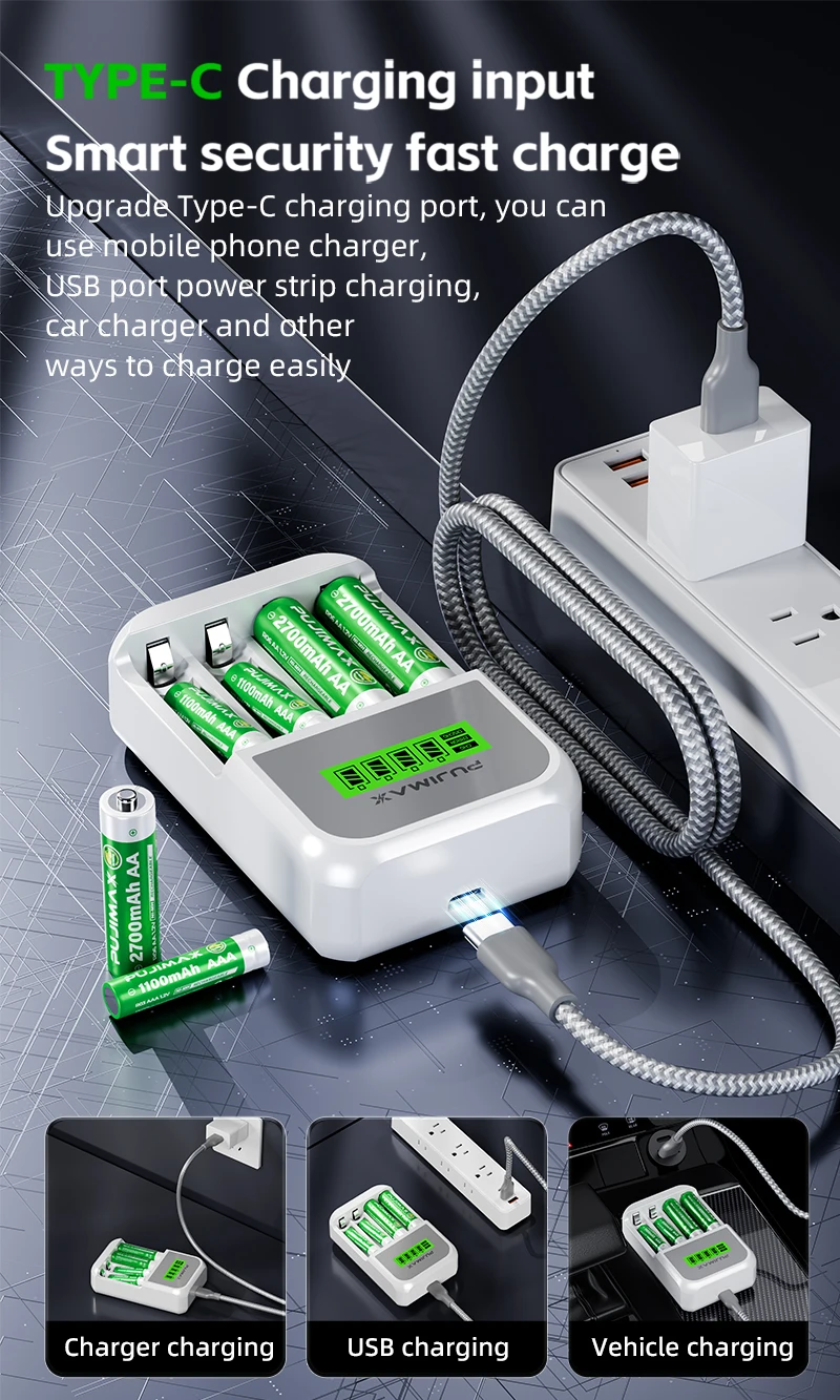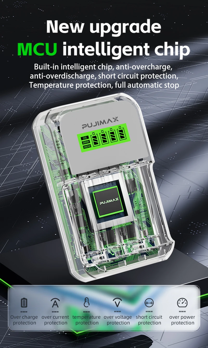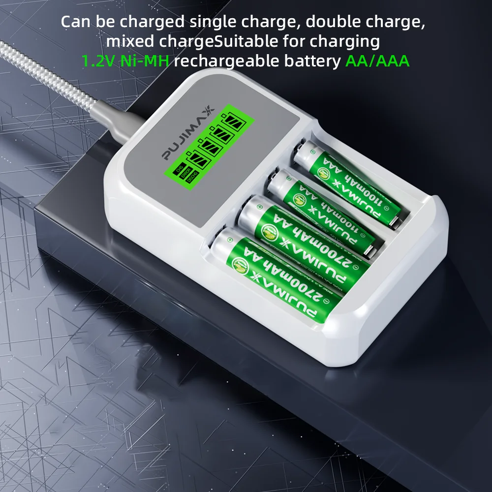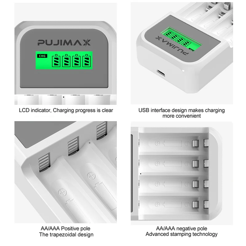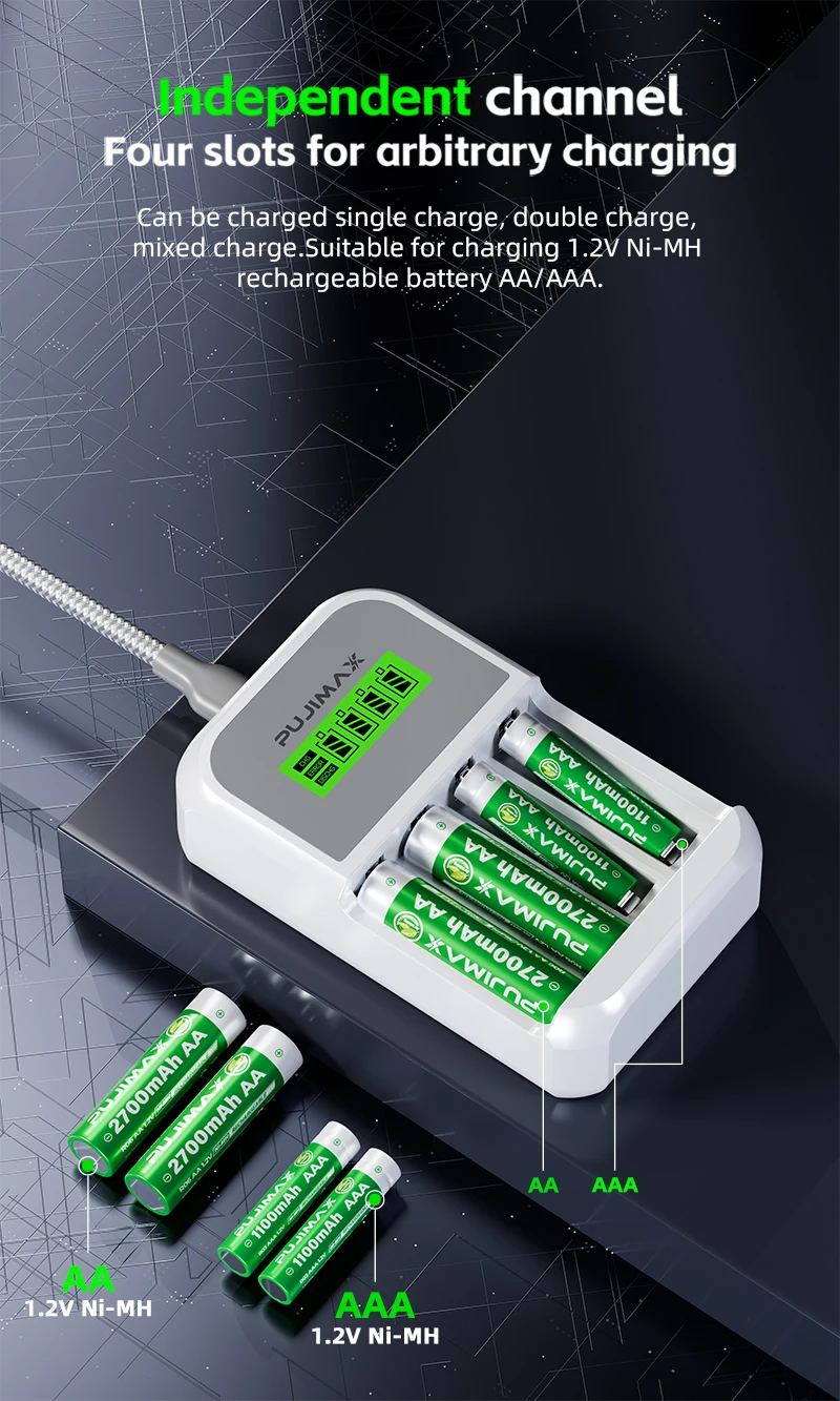 Compatible: Ni-MH/Ni-Cd 1.2V AA/AAA batteries