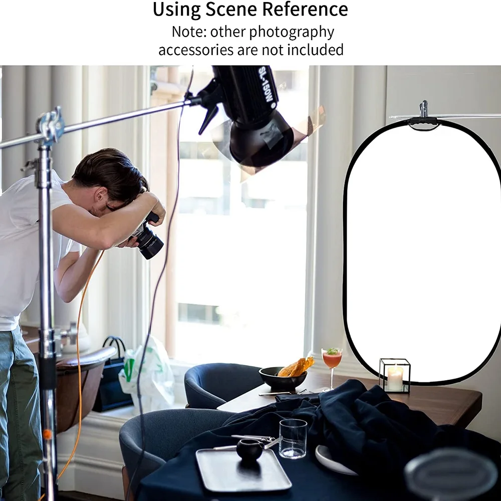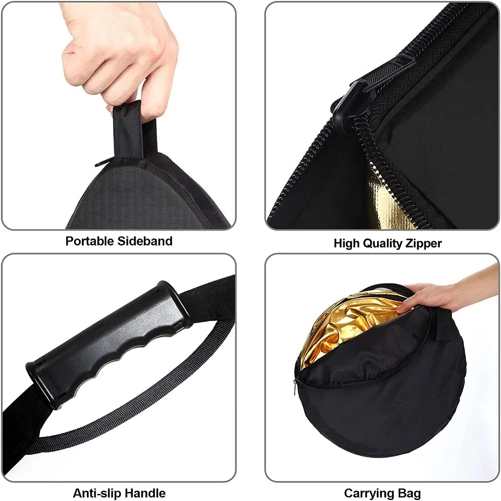MULTIFUNCTIONAL — 5 different surfaces with 5 functions; silver, gold, black, white and translucent can fill, reflect, absorb, diffuse or soften light.