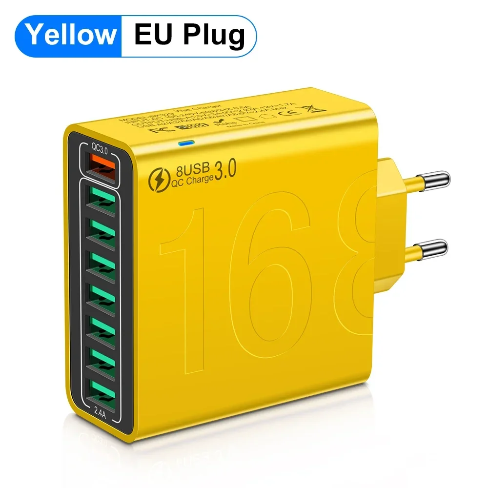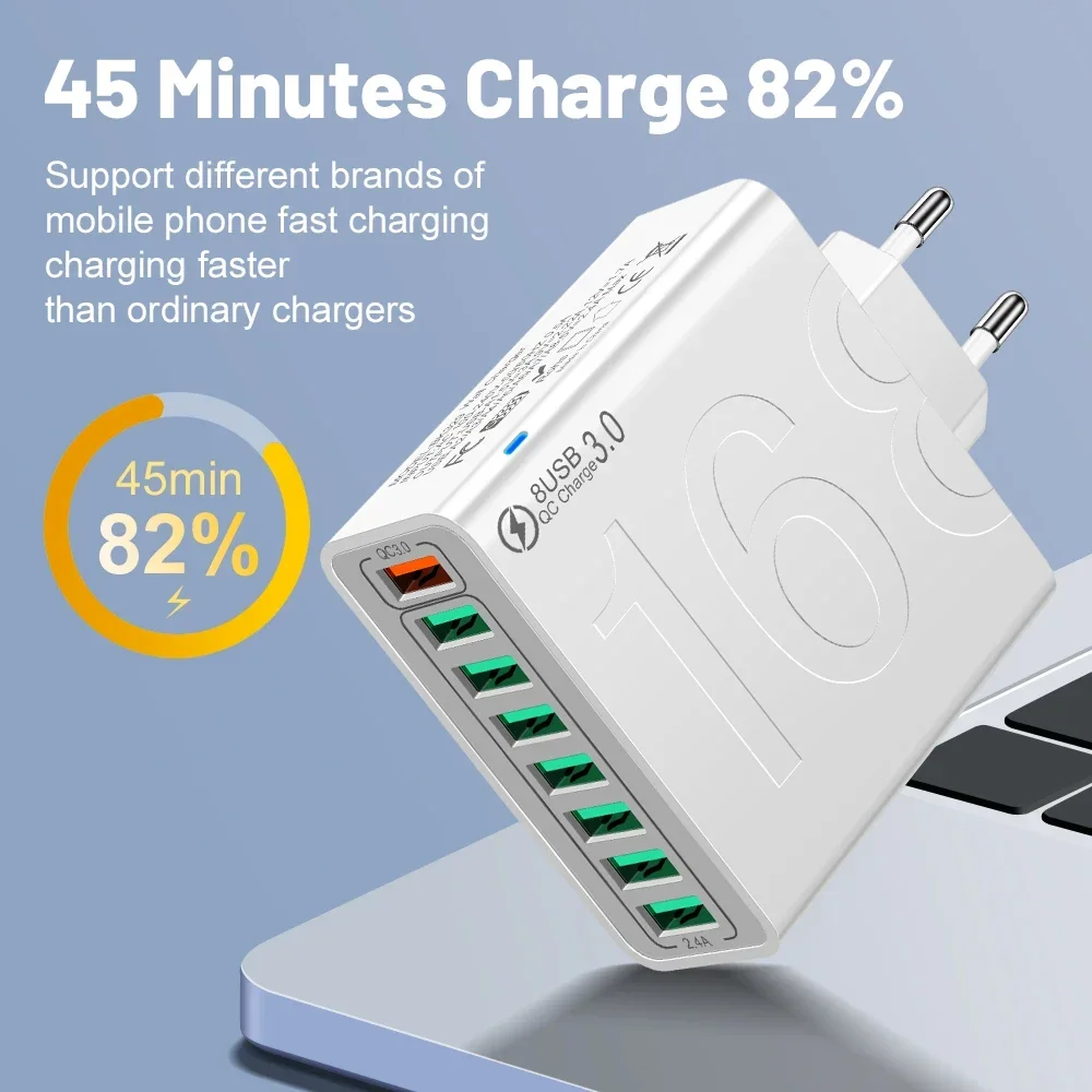 Total 150W 8 Ports USB Charger Fast Charging Phone Charger Adapter For iPhone Samsung Xiaomi 14 15 Quick Charge 3.0 Wall Charger