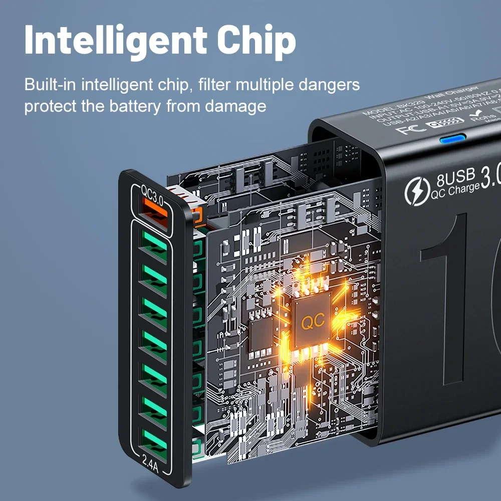 Total 150W 8 Ports USB Charger Fast Charging Phone Charger Adapter For iPhone Samsung Xiaomi 14 15 Quick Charge 3.0 Wall ChargerTotal 150W 8 Ports USB Charger Fast Charging Phone Charger Adapter For iPhone Samsung Xiaomi 14 15 Quick Charge 3.0 Wall Charger