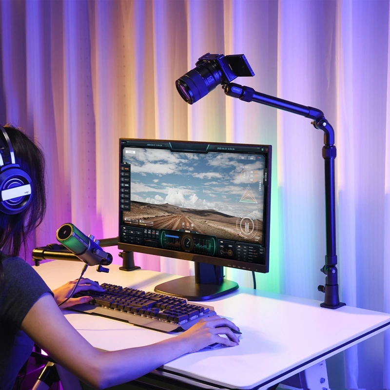 Ulanzi ZJ02 Camera Desk Mount with Holding Arm 4.8cm C-Clamp Flexible Adjustment for Still Life Photography Extend to 65cm Arm