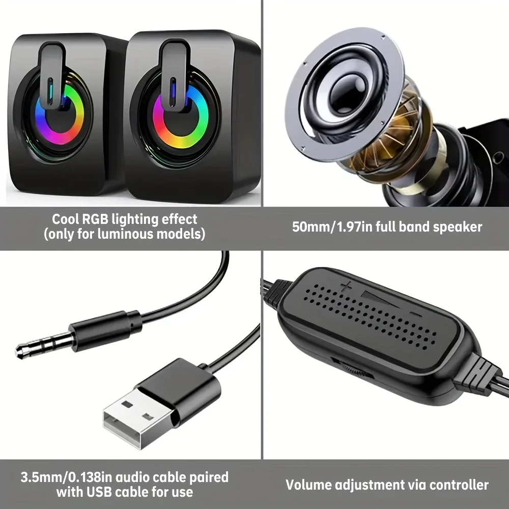 • USB Wired Connection :The speakers are equipped with a USB wired connection, ensuring stable and high-quality sound transmission from your desktop computer.